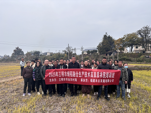 12月3日,由三明市农业农村局主办、福建禾云发展有限公司承办的2025年三明市烟稻融合生产技术高素质农民培训班在建宁县开班。来自全市各县(市、区)从事水稻、烟叶种植的生产经营主体和相关从业人员35人参加培训。