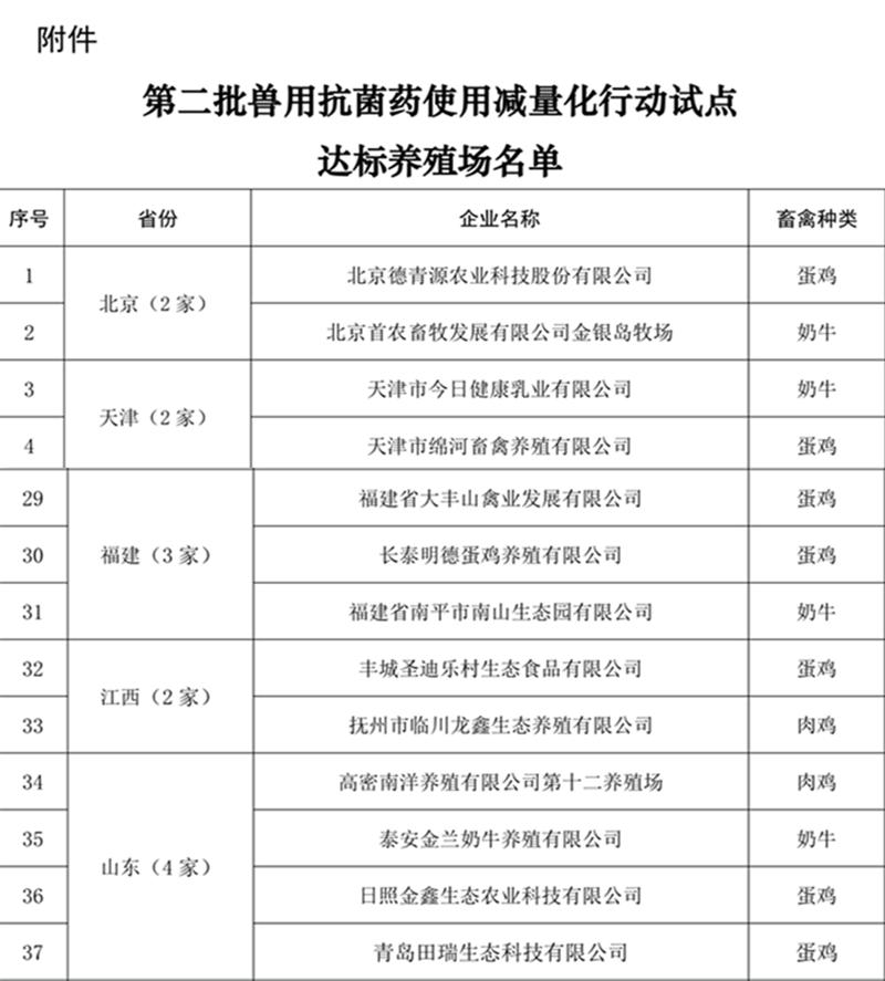 附件:第二批兽用抗菌药使用减量化行动试点达标养殖场名单