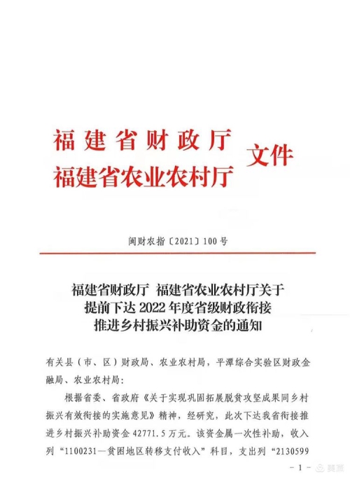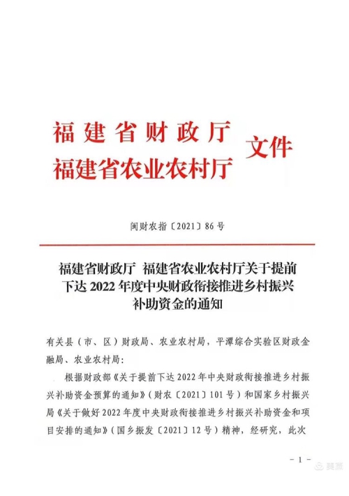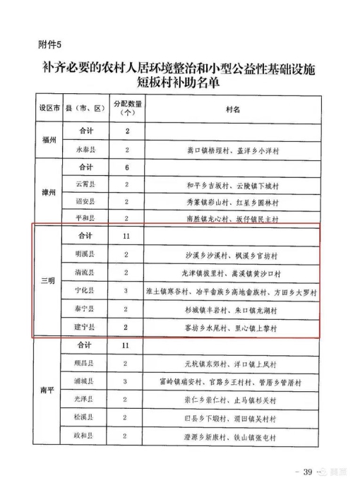 近日,省财政厅、省农业农村厅提前下达了2022年度中央财政和省级财政衔接推进乡村振兴补助资金,我市宁化县石壁镇南田村、泰宁县新桥乡大源村等45个村获得补齐农村人居环境整治短板补助资金2250万元,其中闽赣交界12个行政村获得补助资金600万元,补助金额居全省首位。