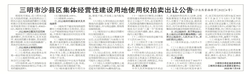 7月29日,三明市沙县区首宗农村集体经营性建设用地使用权拍卖完成,这标志着沙县区农村宅基地制度改革试点工作取得又一重大成果。