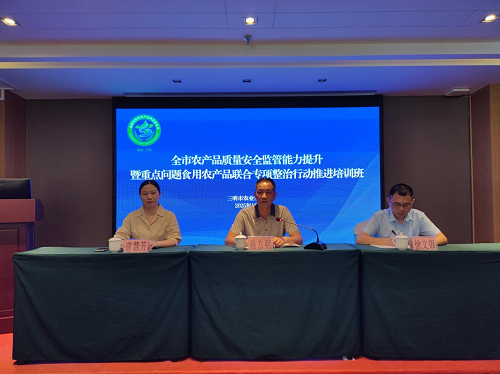 培训班围绕《中华人民共和国农产品质量安全法》及《福建省农产品质量安全条例》解读、食用农产品承诺达标合格证与一品一码追溯并行制度政策解读及系统运用、农药残留限量标准宣贯和重点问题食用农产品监测情况分析、农业标准立项及标准编写等,开展专题培训,并向参训人员发放《中华人民共和国农产品质量安全法》《福建省农产品质量安全条例》等培训材料。培训班通报了今年以来全市农产品质量安全监管重点工作有关情况,建宁、明溪、尤溪、泰宁等作交流发言。