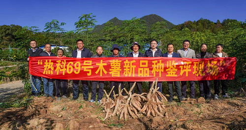 11月25日,全国热带作物品种审定委员会组织专家组,赴福建省三明市大田县均溪镇朱宝山木薯基地,对申报的木薯新品种“热科69号”进行现场鉴评。专家组开展了现场测产、农艺性状鉴定,并听取选育团队关于“热科69号”木薯的汇报,就有关问题进行质询讨论,一致同意“热科69号”通过现场鉴评。