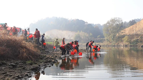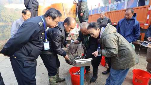 放流现场,一箱箱鲜活的鱼苗被运抵河边,验收专家按照规范流程,对鱼苗数量、规格进行随机抽样检测,同时详细登记相关数据,确保此次放流的鱼苗均为健康、有活力的优质苗种。随后,志愿者将一尾尾鲜活的鱼苗缓缓倒入河中,原本平静的河面瞬间变得热闹起来。