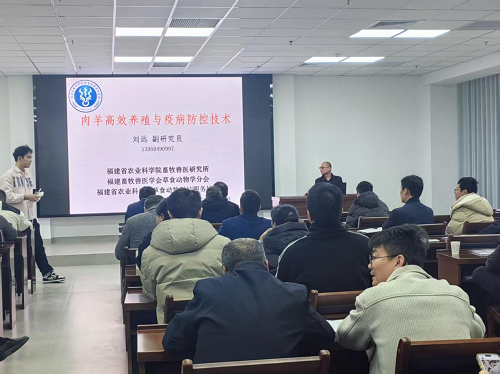 培训班邀请了福建省农业科学院畜牧兽医研究所刘远副研究员授课。课程内容紧扣实际工作需要,重点围绕标准化羊舍建设、肉羊优良品种选择、科学饲喂配比、精准繁育技术等高效养殖要点进行了深入浅出的讲解;同时,针对肉羊常见疫病、高发传染病的识别判断、防控流程、规范用药及应急处置等关键内容进行细致授课,