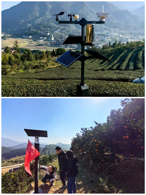 此次配备的“田间病害智能AI监测仪”能够通过高清摄像与人工智能算法,可全天候全方位不间断高清监测茶园病虫害,并通过4G网络实时发送茶叶生长情况、田间温湿度、病虫害等数据至指定终端,实现对病虫害的自动识别、实时监测与早期预警,极大提升了病虫害监测的精准性与时效性。“太阳能风吸式杀虫灯”利用特定波长的光源与风力吸捕技术,可高效诱杀多种果园害虫,显著减少化学农药使用量。目前,相关设备已完成安装调试并投入运行,后续植保技术人员将对果园和茶园业主进行技术培训,指导业主科学运用设备数据,优化防控决策,让科技装备真正成为农民增产增收的“好帮手”,共同守护尤溪的青山绿水与金山银山。(尤溪县植保植检站 李廷玉 柯玲 游钟浩)