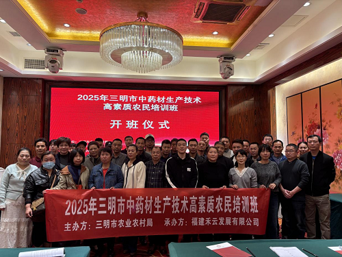 12月9日,由三明市农业农村局主办、福建禾云发展有限公司承办的2025年三明市中药材生产技术高素质农民培训班在三元区开班。来自全市各县(市、区)从事中药材种植的生产经营主体和相关从业人员35人参加培训。