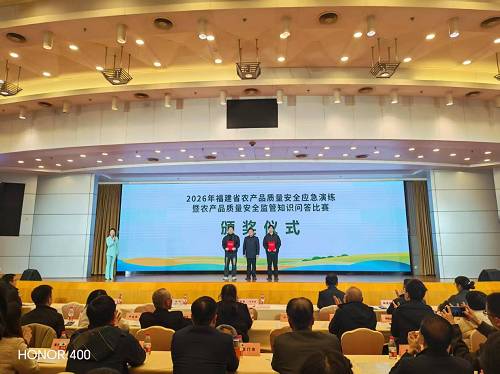 1月13日,由福建省农业农村厅主办、福州市农业农村局承办的2026年福建省农产品质量安全应急演练暨农产品质量安全监管知识问答比赛在福州举行,我市代表队获全省农产品质量安全监管知识问答比赛一等奖。