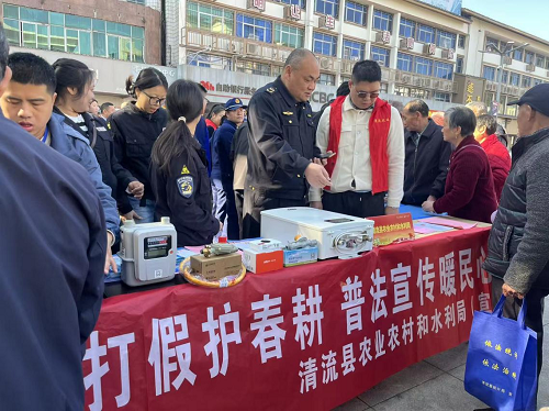 春耕生产,农资先行。当前正值春耕备耕关键时节,农资产品进入销售使用旺季,为规范农资市场秩序,提高消费者对农资产品识假辨假能力,保障春季农业生产安全,3月13日上午,县农业农村和水利局以“3·15”消费者权益日为契机,在龙津广场开展“农资打假护春耕 普法宣传暖民心”主题宣传活动,把识假辨假知识送到农民手中,把法律法规传入农民心里。