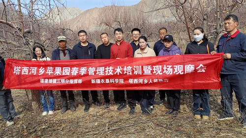眼下,玛纳斯县塔西河乡千亩果园迎来春季开园管护关键期,接到村里的技术服务诉求,三明援疆农技人才丛艳静立即联系石河子新疆农科科学院果树专家姜继元研究员,前往玛纳斯县塔西河哈萨克族乡果园,就春季果园开园管理面对面、手把手为农牧民开展技术服务和指导。专家们现场查看了新引种的西梅、吊杆杏的越冬情况,并进行指导;苹果园里,姜继元研究员为农牧民现场细致讲解并亲自示范苹果树修剪关键技术要点,就如何开展水肥管理、病虫害防治等进行现场解答,为当地果业丰产增收送上“及时雨”。果农们认真聆听,主动上手实践,并表示要把今天学到的技术回去讲给那些没来现场的农牧民。