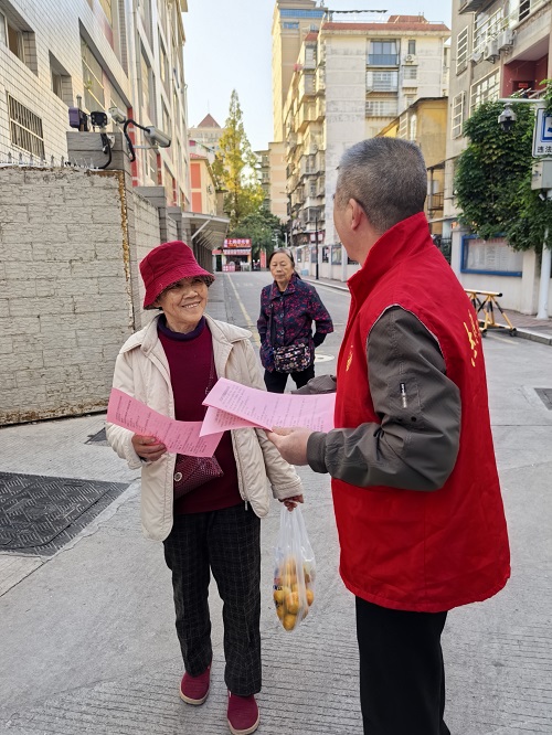 活动最后,支部党员前往梅岭社区开展志愿服务,发放宣传单页,引导市民遵守社会公德、爱护公共环境、维护公共秩序。