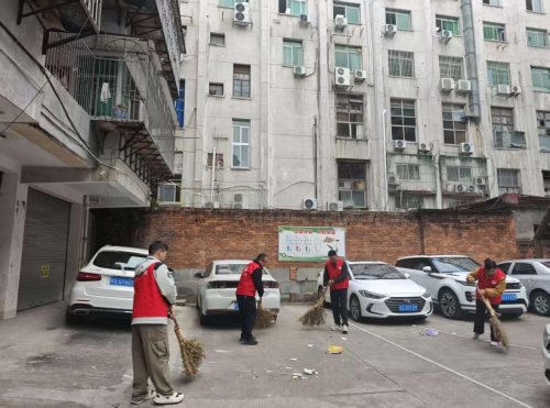 在志愿服务环节,组织党员和青年干部走进红岩社区,开展环境卫生保洁、安全生产宣传等志愿服务活动。