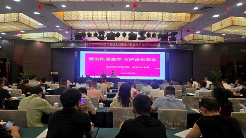 4月14日永安市农业农村局执法大队领导邀请永安市森林公安大队长共同参加永安市农业农村局举办的永安市农技人员培训会进行宣传动员,对肉品专项整治行动联合部署,进一步提升永安市从业人员对肉品安全治理效能,共同守护群众舌尖安全。