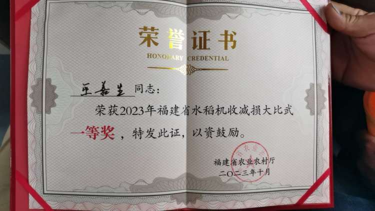 为深入贯彻落实习近平总书记关于毫不松懈抓好粮食生产和关于“厉行节约、反对浪费”的重要指示精神,加快机收减损技术推广应用,最大限度降低粮食作物生产损失,10月19日省农业农村厅在尤溪县举办全省水稻机收减损大比武活动,清流县鸿文达农机专业合作社巫善生,喜获2023年福建省机收减损大比武第一名!