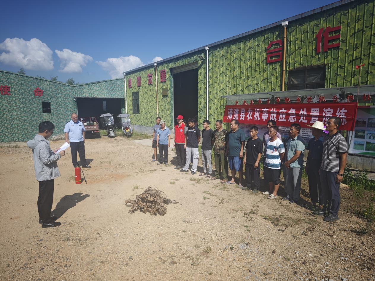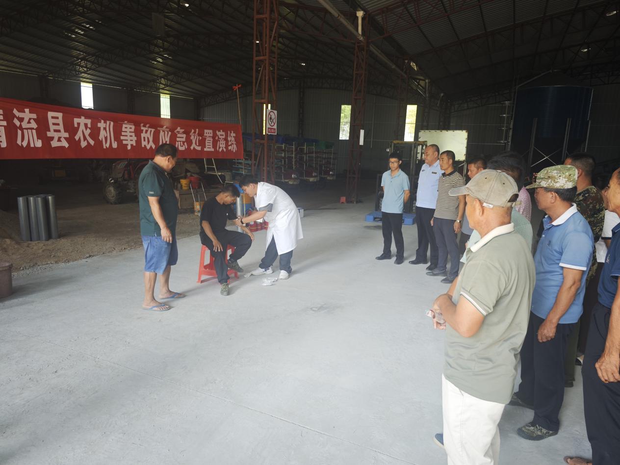 当下正值“三秋”农业生产的关键时期,为增强农机工作人员的消防安全意识,提升应对突发火情和意外伤害的应急处置能力,10月11日上午,清流县农业农村和水利局联合清流县李家乡政府、李家乡消防救援队、李家乡卫生院等部门,在清流县李家胜生农机专业合作社开展农机事故应急处置演练活动。合作社成员及种粮大户50余人参加了演练活动。