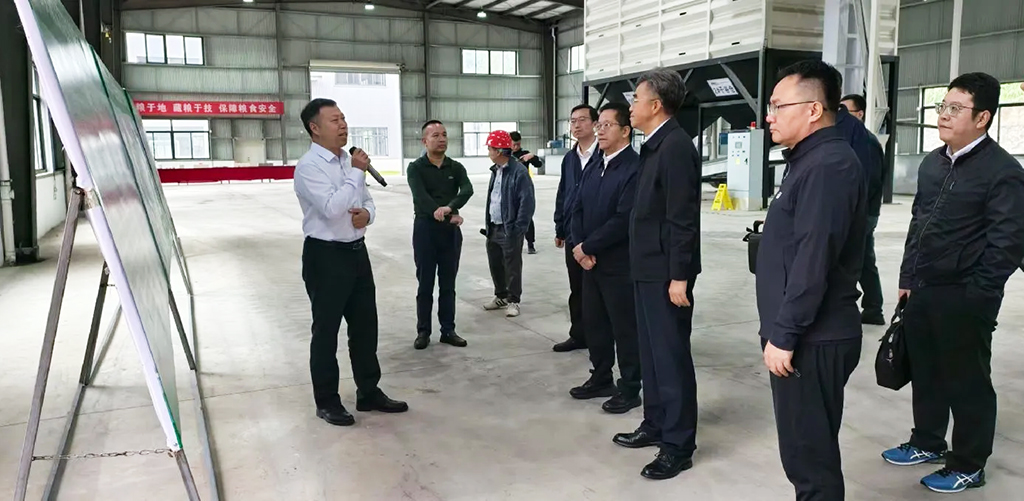 新众诚农机服务专业合作社理事长苏奕军详细介绍了合作社水稻生产全程机械化机具投入及农机作业服务经营情况。调研组深入了解农机作业服务包括粮食机烘服务规模、辐射面、服务单价及产生的经济社会效益,详细了解各级粮食种植惠农补贴政策落地落实情况。