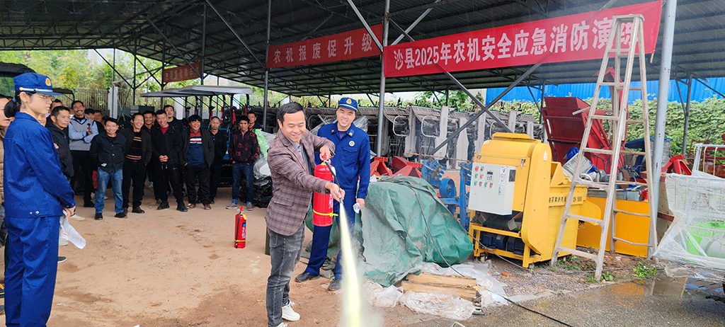 邀请区消防大队消防员专业讲解消防安全知识,开展农机安全应急消防演练,坚决守住农机作业“零事故”红线,为粮油产业规模化发展夯实安全基础。