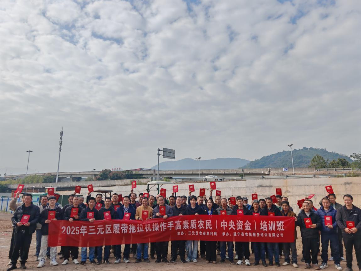 为加快培养适应现代农业发展的高素质农民队伍,提升农机作业规范化、专业化水平,2025年11月26日至12月5日,三元区成功举办了为期10天的高素质农民(履带式拖拉机驾驶)专项培训。本次培训吸引了全区46名农机手积极参与,并于12月5日顺利完成全部教学与考核任务,实现圆满收官。