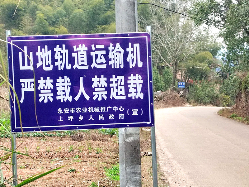 在上坪乡重点路段、村口、农机作业集中区域,安装了“山地轨道运输机 严禁载人禁超载”“无牌无证手扶拖拉机运输机组 严禁改装及上路行驶”等多块安全警示标牌。醒目的蓝色标牌与周边的山林村道形成鲜明对比,时刻提醒着过往群众和农机驾驶员绷紧“安全弦”。