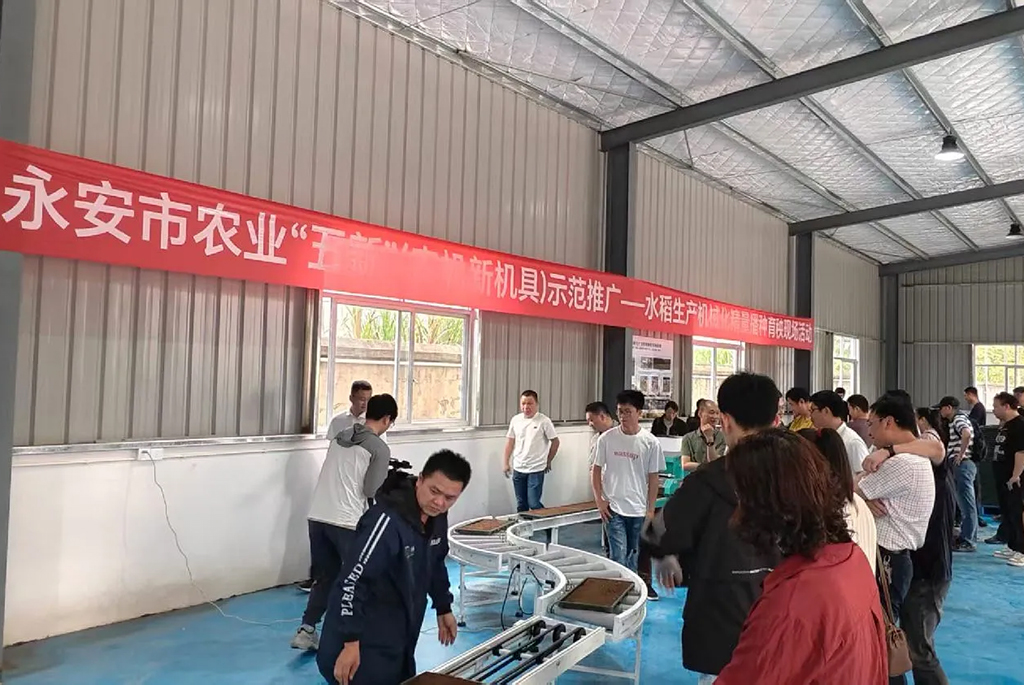 本次活动分设两个核心演示区,系统展示了水稻生产从育秧到播种环节的先进机械化解决方案。