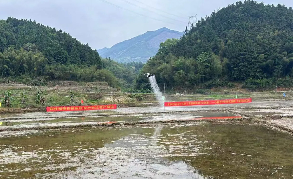 在大湖镇冲二村新众诚合作社早稻种植基地的田间地头,一架架搭载播种系统的无人机腾空而起,按照预设航线匀速飞行,将经过浸种处理的稻种精准均匀地撒播到平整好的田块中。这是本次活动的另一亮点——机械直播(无人机飞播)作业演示。无人机飞播无需育秧、拔秧和移栽,具有作业效率高、播撒均匀、适应性强等特点,尤其适合规模化生产及地形复杂区域,显著降低了劳动强度和生产成本。