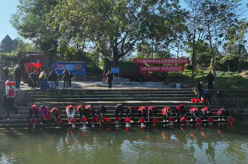 活动现场人头攒动,气氛热烈。在宁化县农业农村局的组织下,来自县检察院、生态环境局、县政协、县河长办等多部门近百人参与了放流活动。大家小心翼翼地将一桶桶活蹦乱跳的鱼苗送入水中,看着它们欢快地游向深处。放流的鲢鱼、鳙鱼、团头鲂均为滤食性鱼类能有效摄食水体中的浮游生物,降低富营养化风险,对改善沙溪水质、修复渔业资源,提升水域生态承载力具有显著作用。